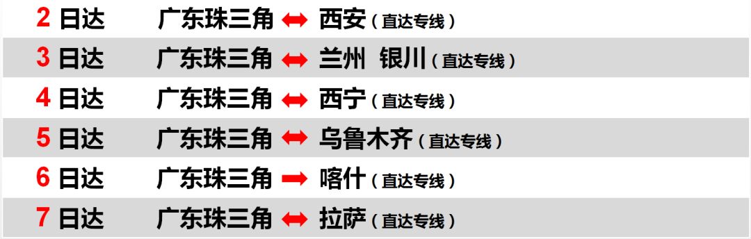 大西北的路途不遥远,同星物流从珠三角至大西北的直达专线,两日即达西安,三日达兰州、银川,四日达西宁,五日达乌鲁木齐,六日达喀什,七日达拉萨。